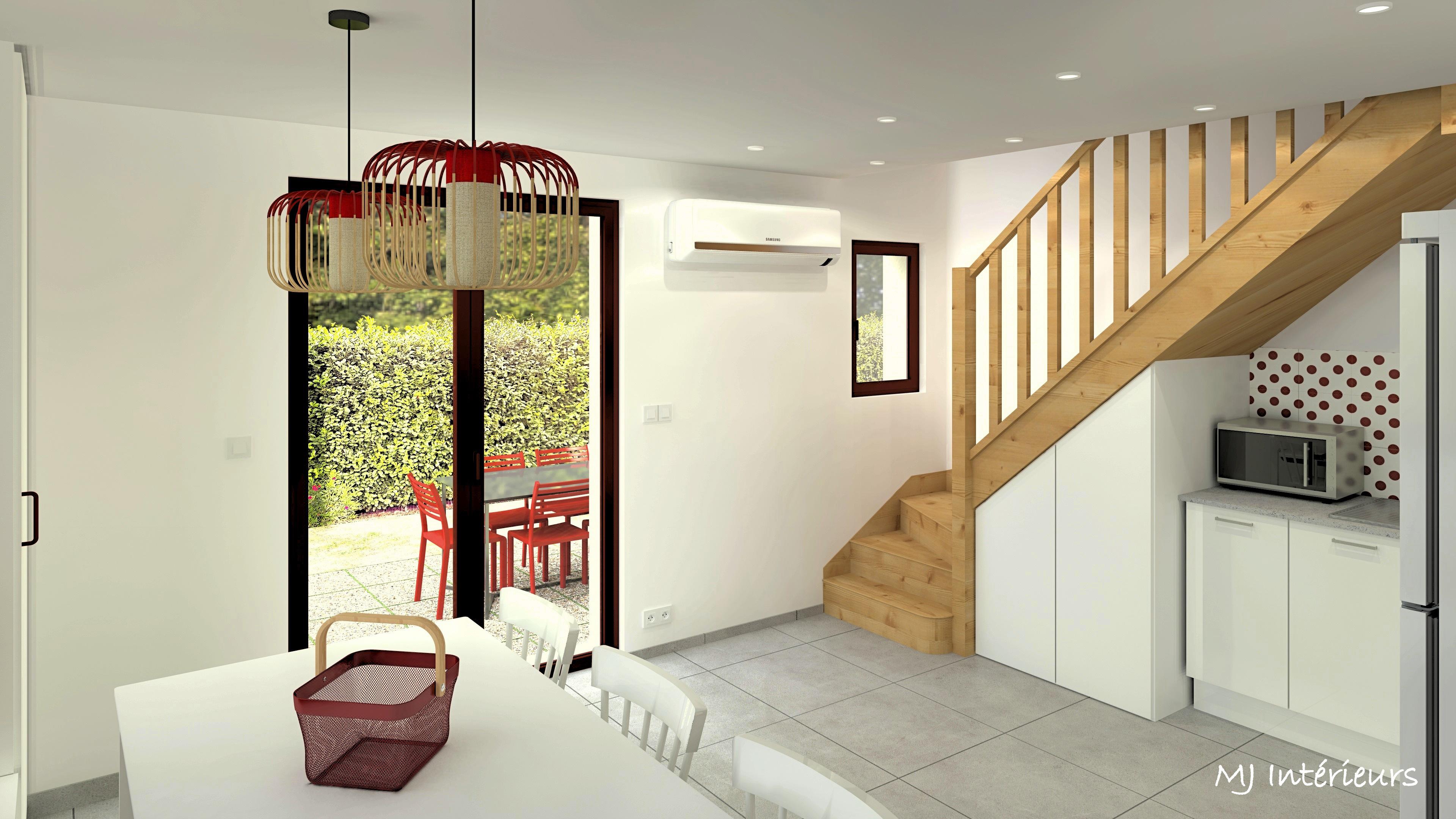Côté ambiance, le rouge des colombages de la maison de style basque est décliné à l'intérieur afin de créer une harmonie.