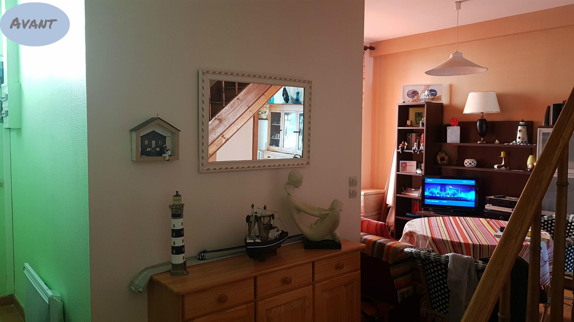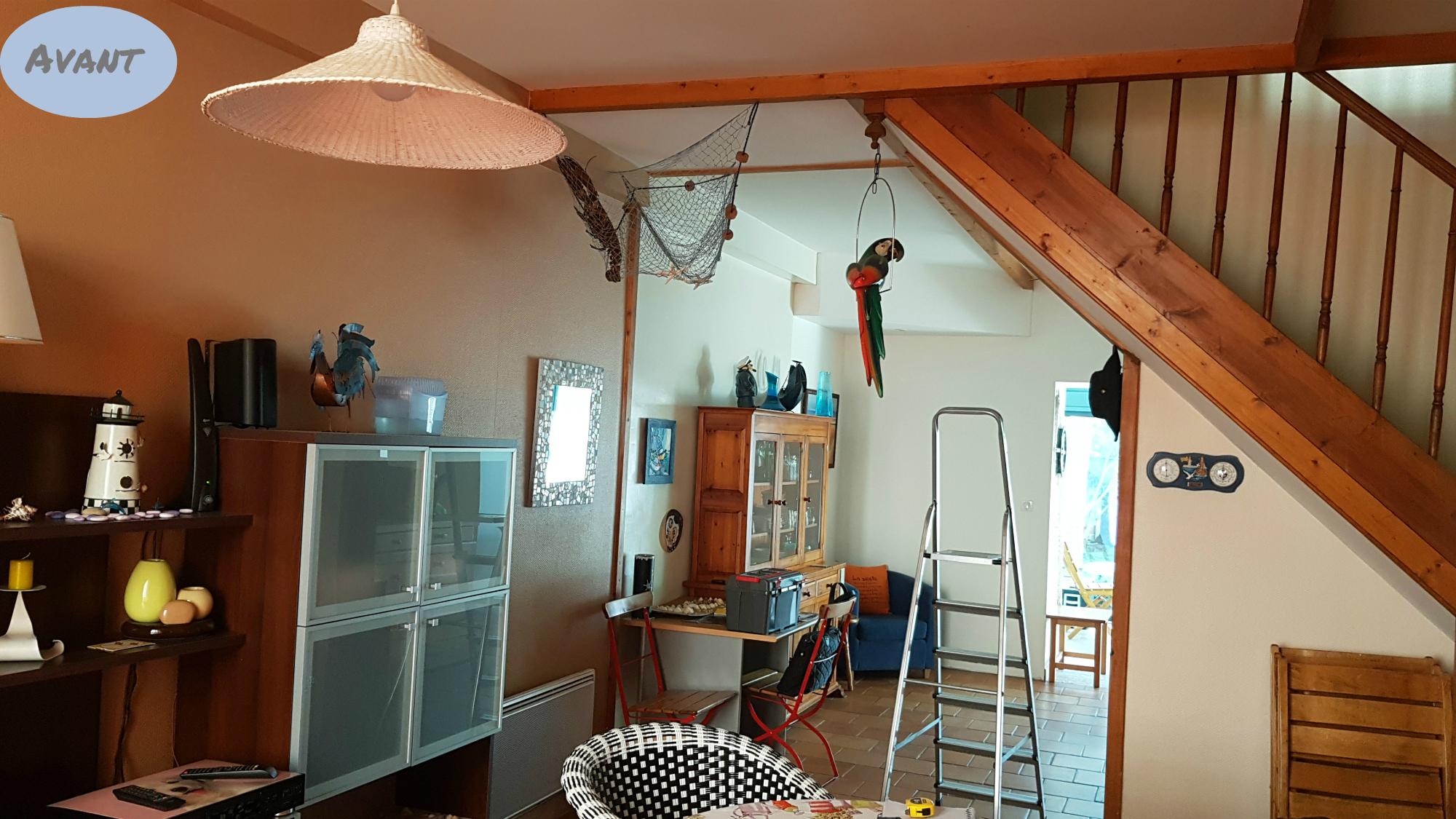 Une verrière sépare les 2 espaces et la fermeture de l'escalier permet d'accueillir un dressing.