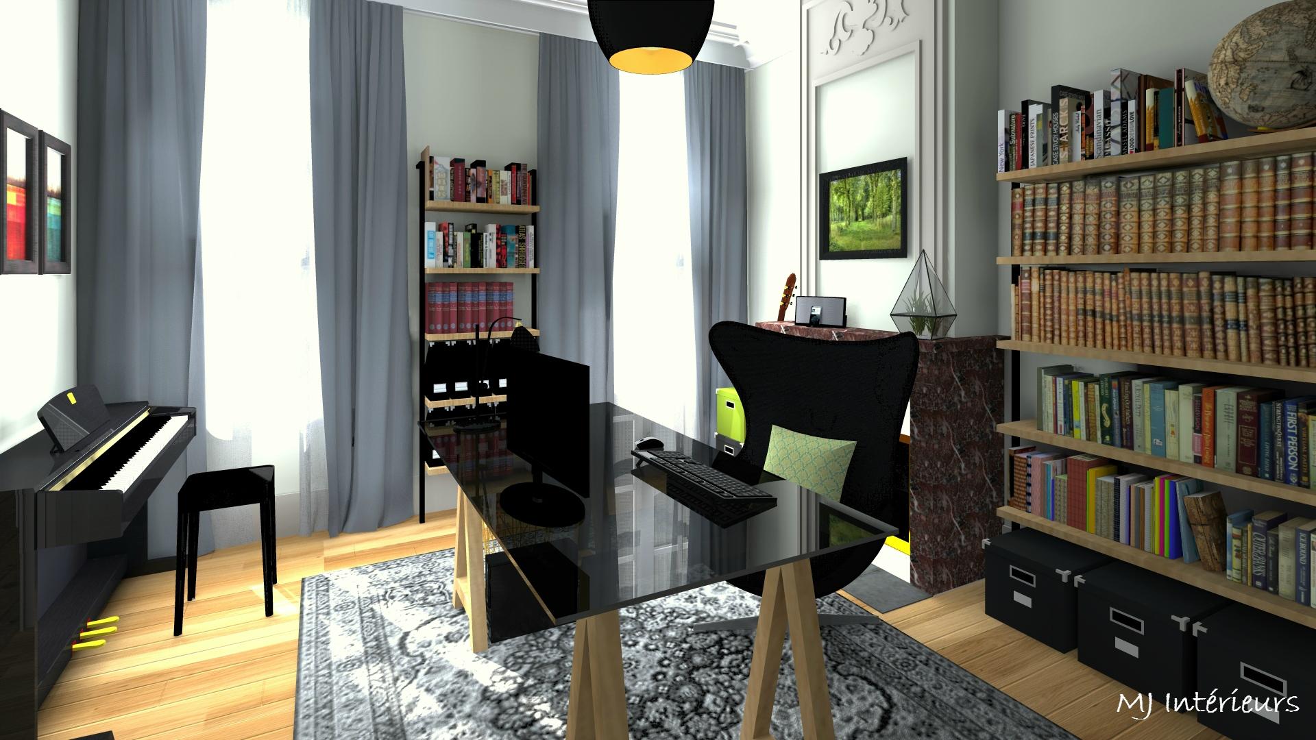 Une pièce à vivre, une chambre et un bureau qui doit pouvoir accueillir de nombreux livres et un piano numérique.