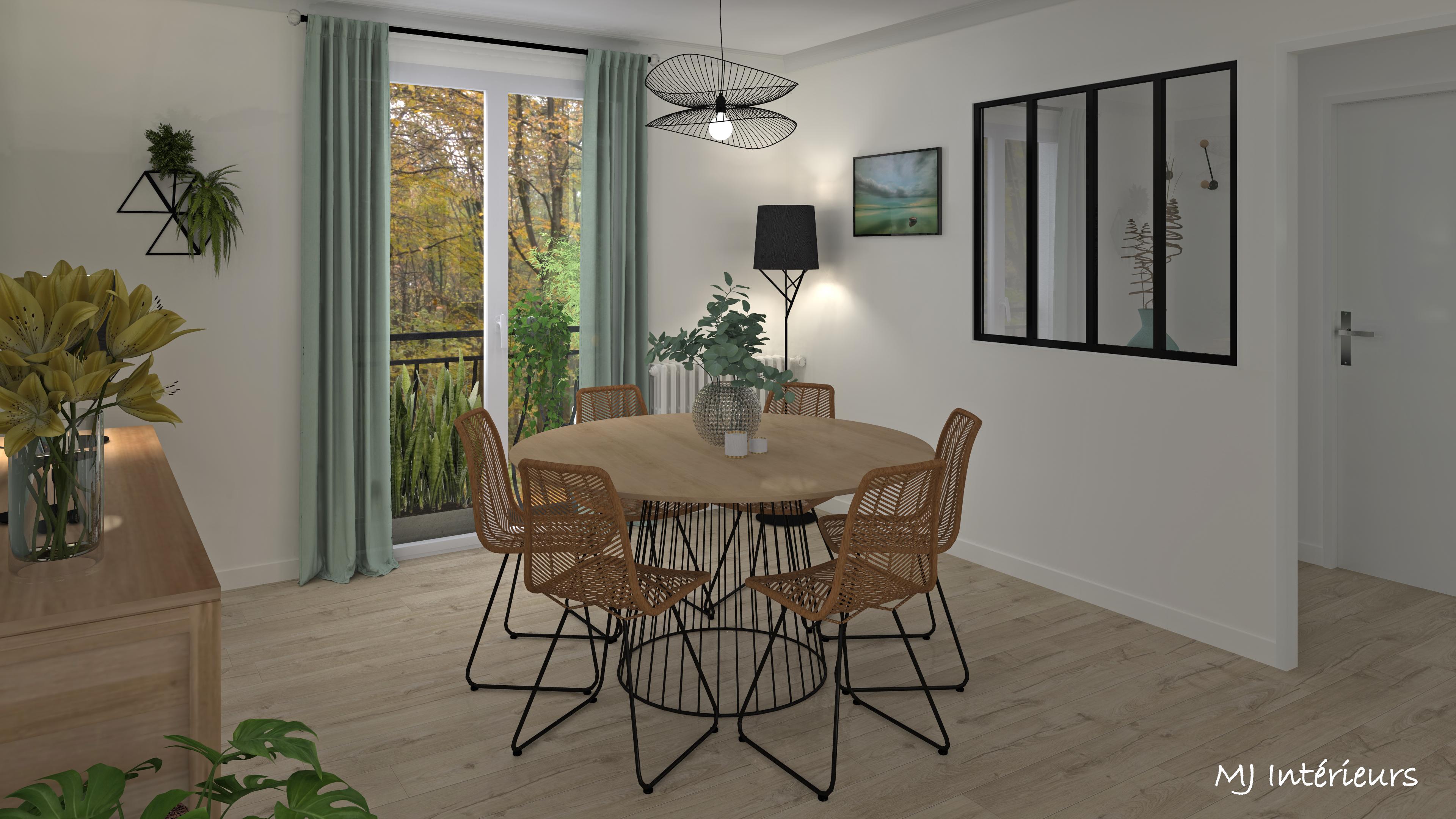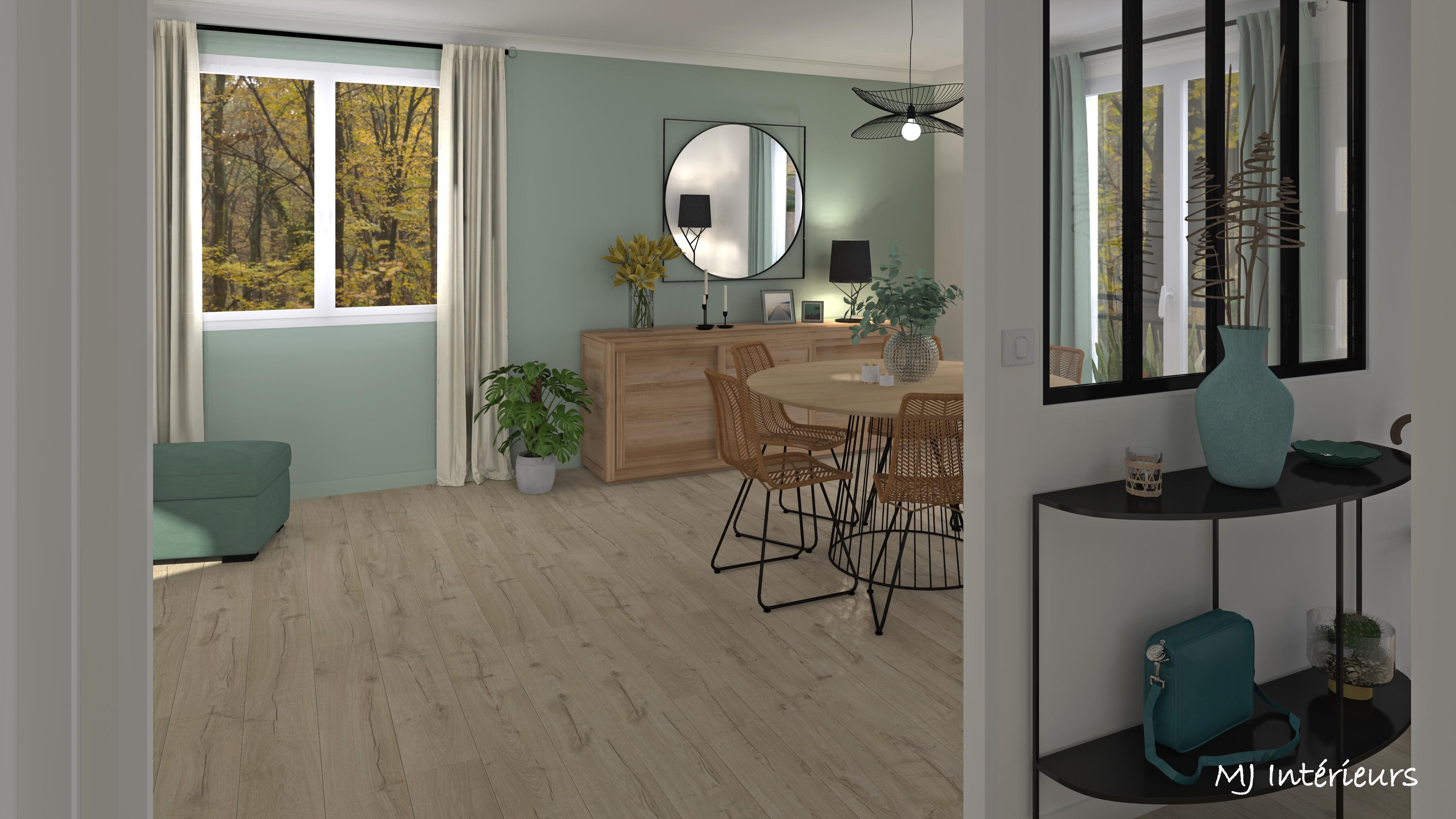 Dans une maison des années 60, remise aux goûts du jour d'une entrée et d'un séjour.
