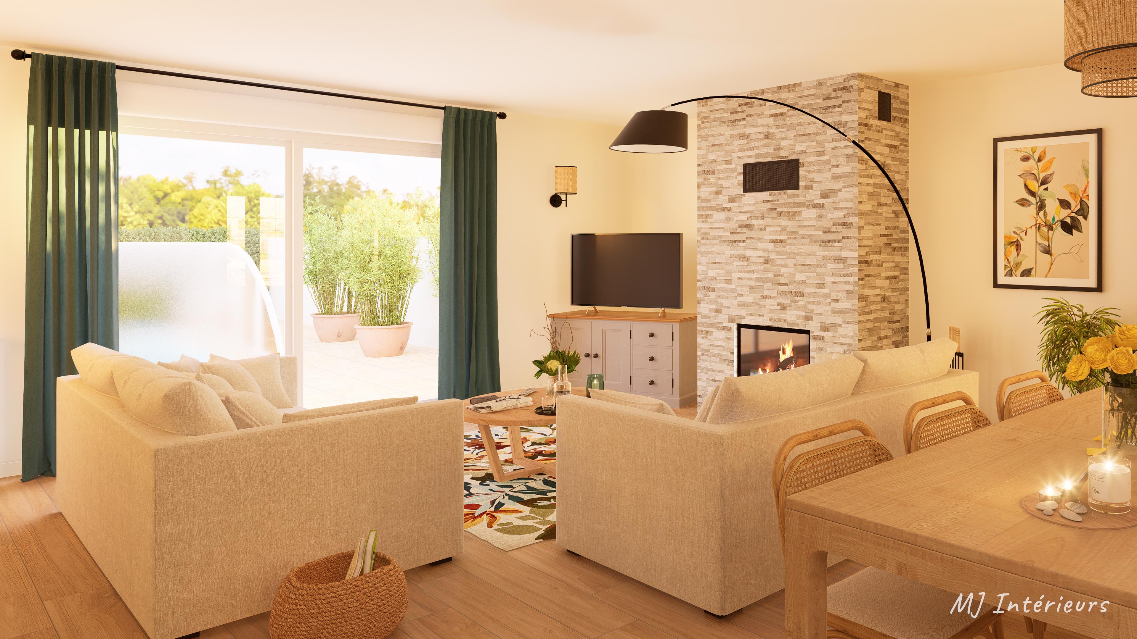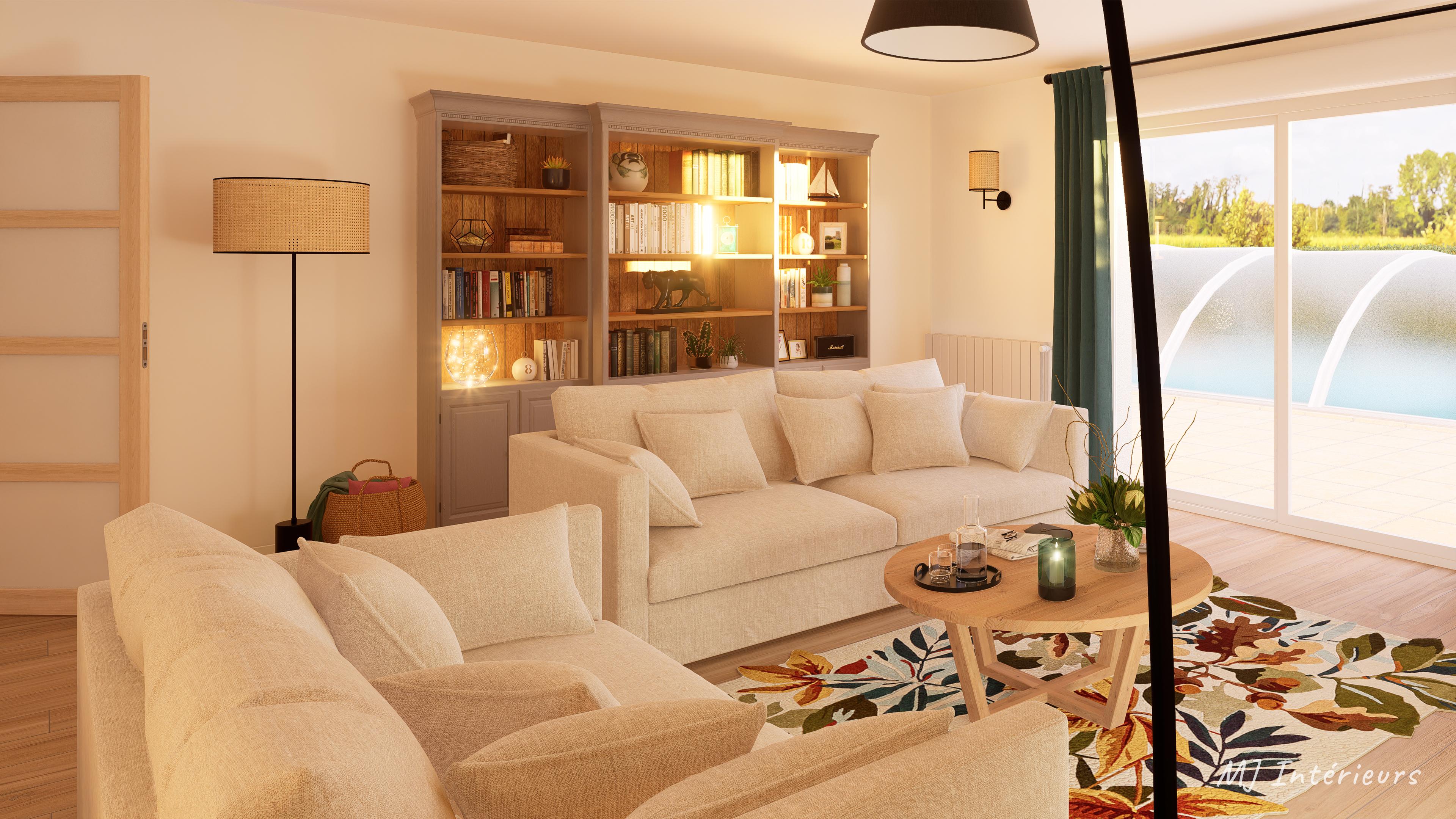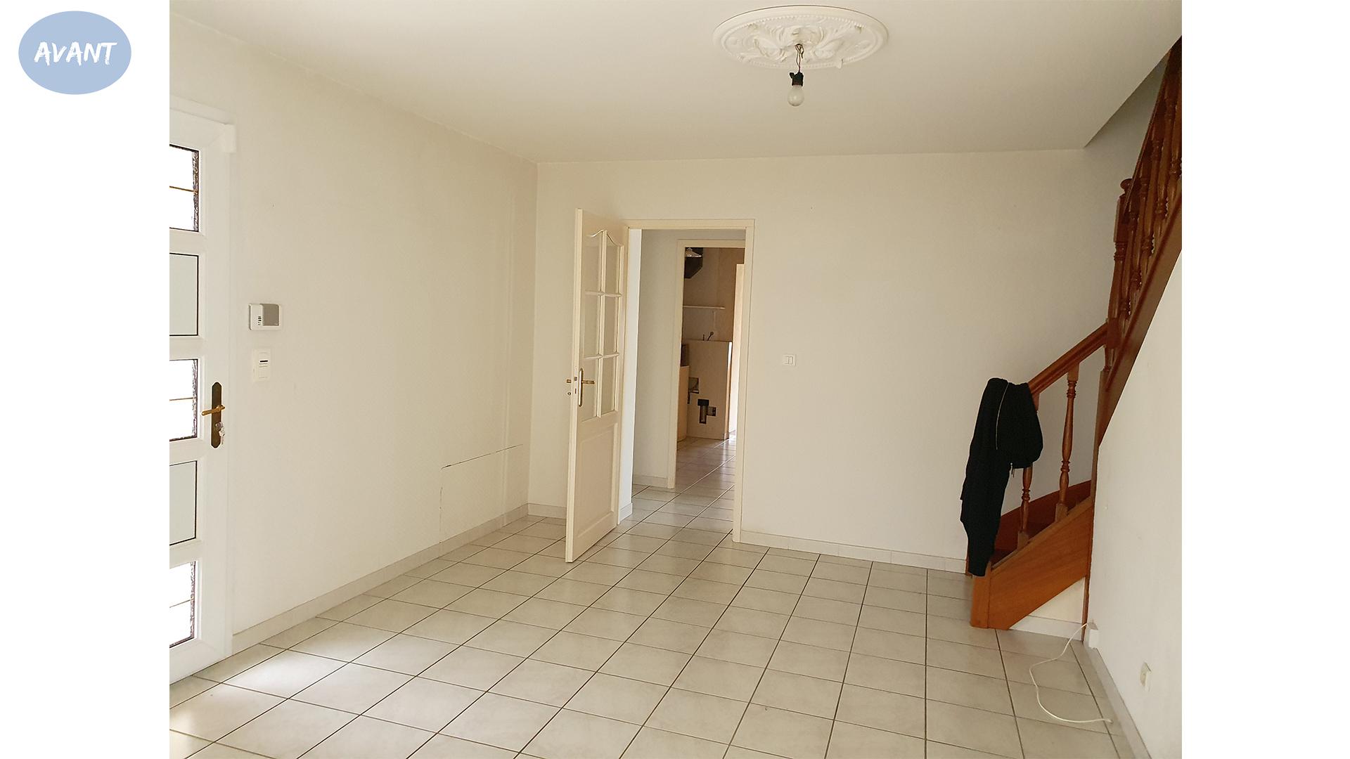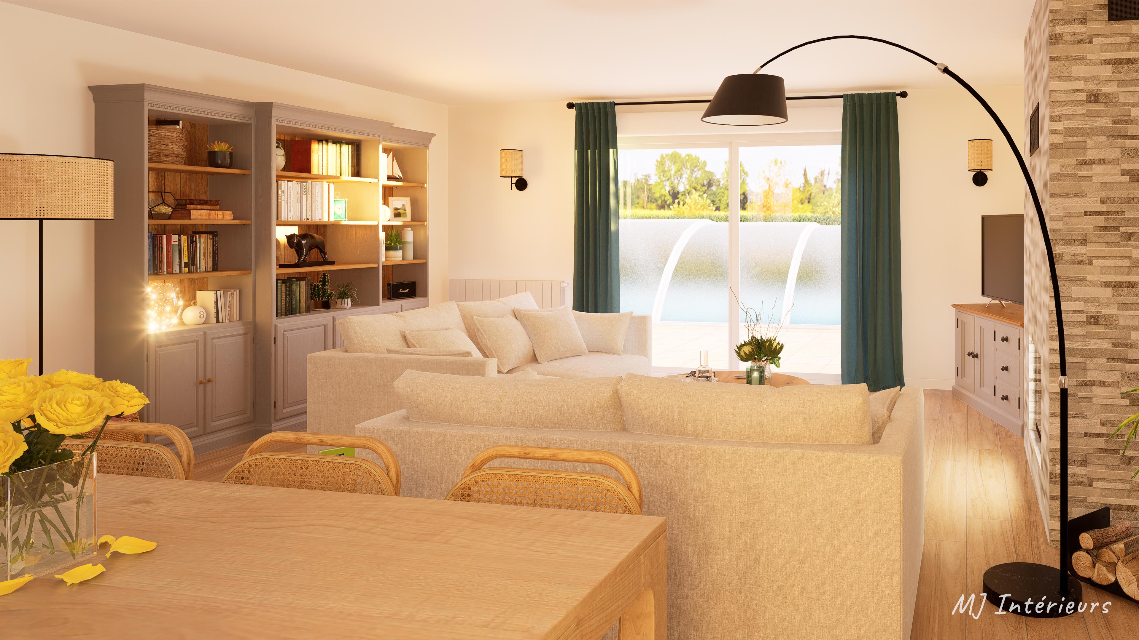 Dans leur nouvelle maison (construite en 1993), mes clients avaient besoin d'être guidés pour la rénovation totale des espaces de vie : entrée, séjour et cuisine.